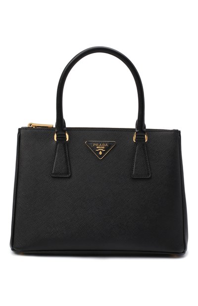Сумка Galleria черного цвета одинаково хорошо впишется как в офисный, так и в повседневный образ. Для изготовления модели Миучча Прада выбрала фактурную сафьяновую кожу. Передняя панель декорирована фирменным треугольным патчем с золотистым логотипом марки. В отделение на молнии поместятся планшет и складной зонт, во внутренний карман — ключи. Аксессуар вошел в осенне-зимнюю коллекцию.