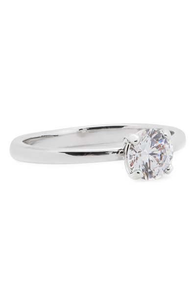 Серебристое кольцо-солитер из металла с родиевым покрытием дополнено прозрачным сверкающим кристаллом алмазной огранки. Идеальным фоном для этого элегантного аксессуара станут натуральный маникюр и лаконичный наряд.