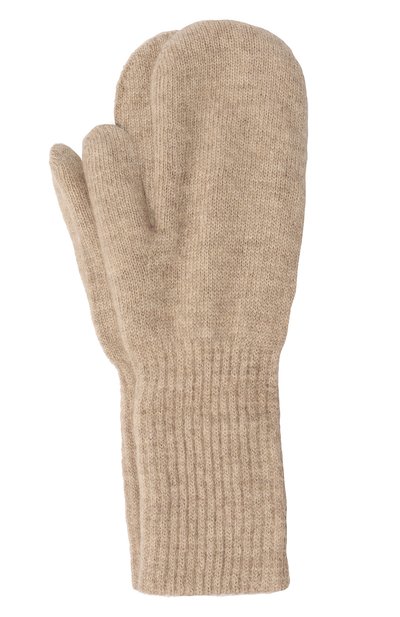 Светло-бежевые варежки, выполненные гладкой бесшовной вязкой, мягко обволакивают руки, хорошо согревая. Для изготовления аксессуара с удлиненной эластичной манжетой использовали нежный кашемир. Пряжу вручную очистили от грубых волокон, поэтому изделие из такого материала не колется.