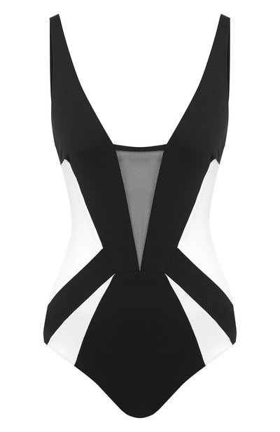 Черно-белый купальник поможет визуально удлинить силуэт и сделать талию тоньше: такого эффекта Наталья Якимчик добилась с помощью техники color block (этот прием — любимый спецэффект дизайнера). Для создания модели мастера марки использовали мягкий полиамид с добавлением прочных эластановых волокон.