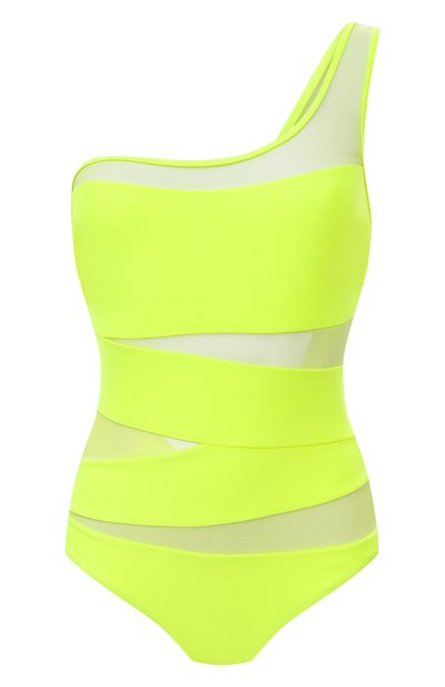 Неоново-желтый цвет этого слитного купальника бодрит не хуже, чем цитрусовый фрэш, а полупрозрачные сетчатые вставки рифмуются с глубоким вырезом сзади. Асимметричная модель с единственной широкой бретелью выполнена из эластичного быстросохнущего текстиля.