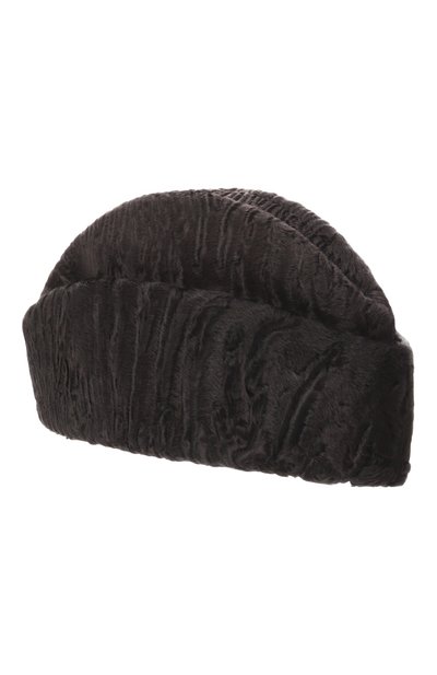 Серый цвет задает тон лаконичной пилотке, но от этого она не выглядит просто. Все дело в фактурном муаровом узоре каракульчи, который невозможно повторить даже специально. Такой материал нежнее и тоньше обычного каракуля, поэтому аксессуар получился особенно комфортным.