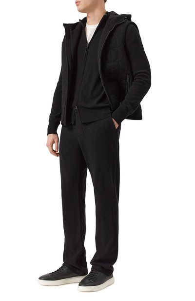 В коллекцию сезона осень-зима Миучча Прада включила прямой черный кардиган с высоким воротником-стойкой. Модель изготовили из мягкого кашемира. Такой материал теплее, легче и долговечнее обычной шерсти, а на ощупь – гораздо нежнее и приятнее. Благодаря минимуму декора (только небольшая эмблема марки на спинке) такая вещь не будет противоречить офисному образу в стиле free friday.