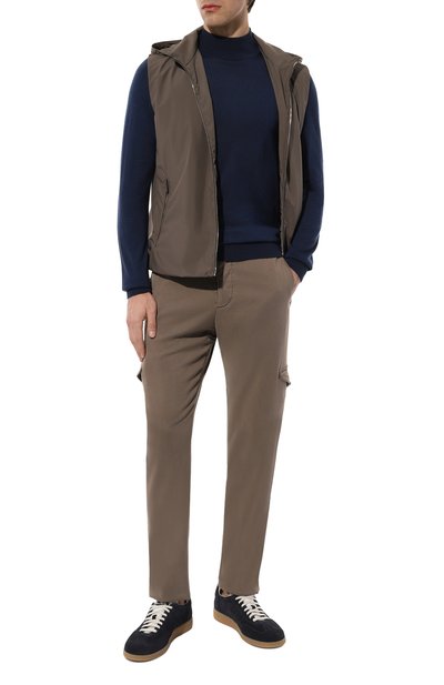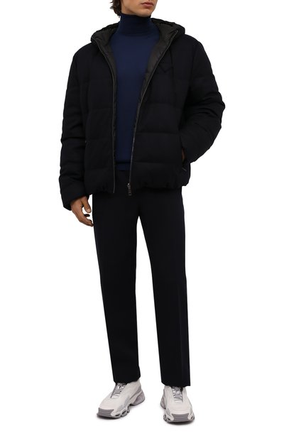 Водолазка универсального темно-синего цвета впишется в повседневный образа с джинсами и кедами или станет достойной альтернативой рубашке в офисе с нестрогим дресс-кодом. Все дело в кашемировом полотне: за счет тонкости оно не создает лишний объем и при этом хорошо согревает. Миучча Прада включила модель в осенне-зимнюю коллекцию.