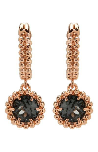 Миниатюрные серьги изготовлены мастерами марки из легкого ювелирного сплава с напылением цвета розового золота (оно защищает материал от потемнения). Аксессуар со сверкающими кристаллами Swarovski – универсальный солдат: украшение гармонично дополнит образ с коктейльным платьем или не будет противоречить офисному дресс-коду.