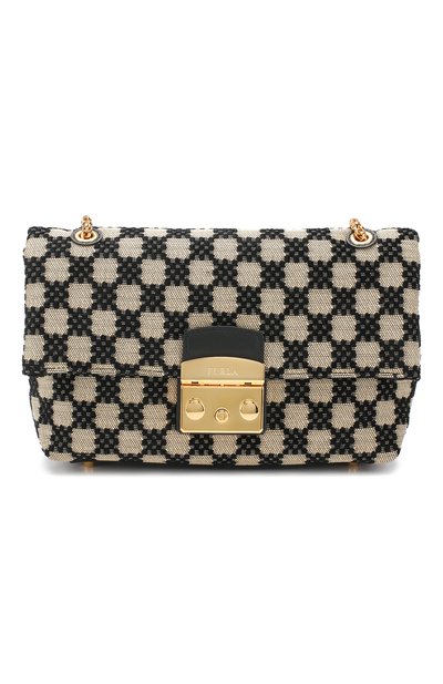 В весенне-летнюю коллекцию вошла обновленная версия знаковой для бренда сумки Metropolis Nuvola. На этот раз для создания модели мастера марки, основанной Альдо Фурланетто, использовали плотный материал в черно-молочную клетку. Она выглядит объемно за счет мелкого набивного мотива. Изделие закрывается позолоченным кнопочным замком. Ремень со вставками-цепочками можно трансформировать в длинные ручки.