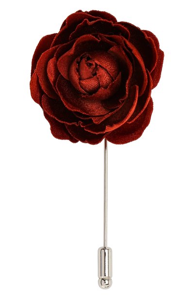 Небольшая булавка из легкого полированного металла украшена нежной розой насыщенного красного цвета. Мастера марки вручную изготовили каждый лепесток из тонкого, но прочного шелка с характерным мягким блеском.