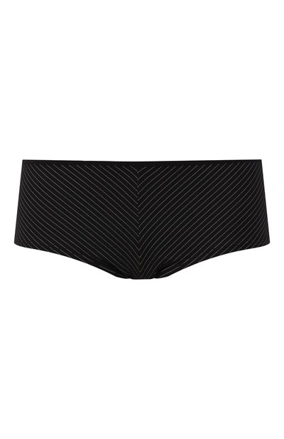 При пошиве трусов с заниженной посадкой мастера бренда использовали тонкий матовый нейлон. Этот мягкий, приятный на ощупь материал хорошо тянется за счет прочных эластановых нитей и пропускает воздух благодаря легким хлопковым волокнам, поэтому в черном изделии в тонкую белую полоску будет комфортно в течение дня.