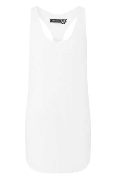 Белоснежны й топ идеально подойдет для жары: за комфорт здесь отвечает ультрамягкий модал, который не только хорошо пропускает воздух и отводит влагу, но и почти не ощущается на теле. Свободная модель с глубоким круглым вырезом и Т-образной перемычкой не сковывает движения.