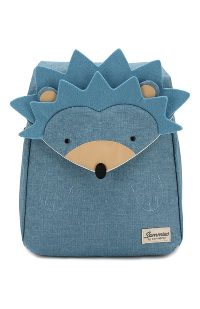 Главной темой линии аксессуаров Happy Sammies стали животные. Например, этот рюкзак синего оттенка закрывается клапаном, который стилизовали под мордочку ежа. Декор поддерживает вышивка в виде лап на передней панели. Для пошива вместительной модели использовали прочный текстиль, похожий на деним. Регулируемые лямки можно соединить между собой лентами с фастексом.