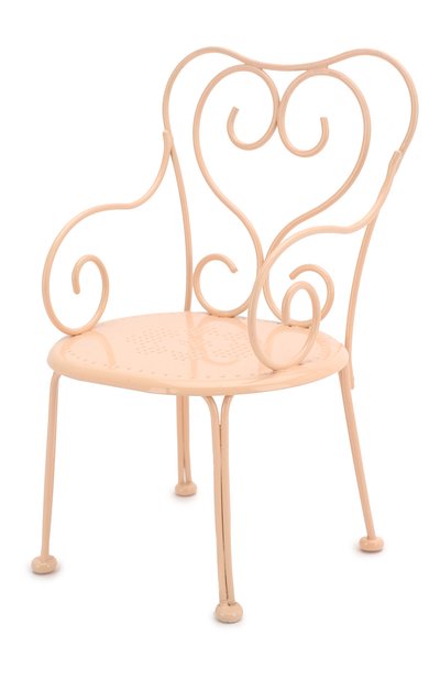 Бежевый цвет для этой игрушки в виде кованого стула дизайнеры бренда позаимствовали у мороженого крем-брюле. Модель изготовлен а из легкого, но прочного сплава, поэтому прослужит долго. Спинка украшена мотивом в виде сердца.