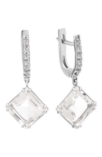 Небольшие серьги с квадратной подвеской из прозрачного горного хрусталя выполнены мастерами марки из легкого гипоаллергенного серебра. Изделие из тако го материала устойчиво к царапинам и долго не тускнеет. Такой аксессуар гармонично завершит как яркий, так и лаконичный образ.