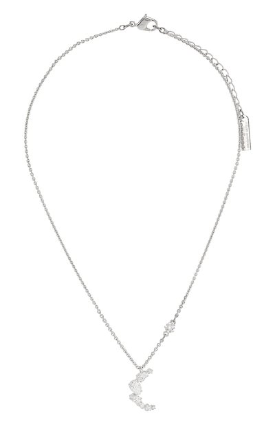 Капсульную коллекцию MoonSun, в которую вошла и эта серебристая подвеска, дизайнеры бренда придумали совместно с Пенелопой Крус. Тонкую цепочку выполнили из легкого прочно го сплава с блестящим родиевым покрытием. Модель украсили шармом в виде звезды и крупным кулоном в виде полумесяца, инкрустированным сверкающими кристаллами (на создание декора актрису вдохновило ночное небо).