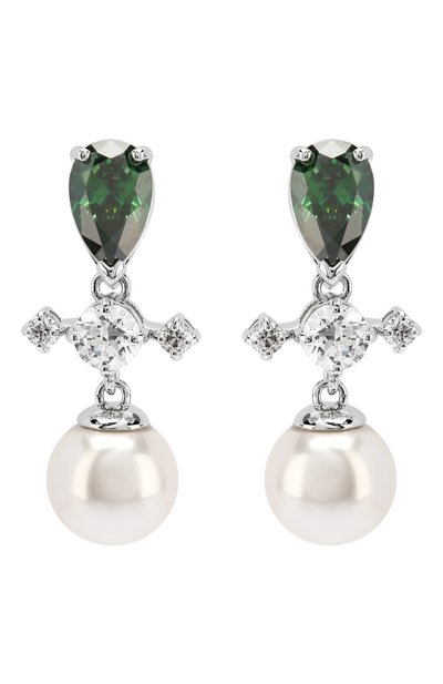Миниатюрные серьги гармонично завершат и повседневный образ, и коктейльный ансамбль. Украшение выполнили из прочного легкого сплава с гипоаллергенным родиевым покрытием. Основание инкрустировали зеленым каплевидным кристаллом, подвеску – перламутровой жемчужиной.