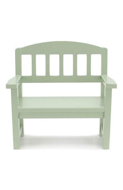 Для создания скамейки с высокой спинкой и подлокотниками использовали прочное полированное дерево. Изделие покрыли эмалью оливкового оттенка, которая не вызывает аллергию и не выделяет неприятных запахов. Модель подойдет для игрушек миниатюрного и среднего размера.