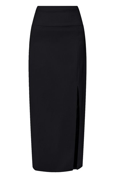 Прямая темно-синяя юбка из коллекции сезона осень-зима станет отличным фоном для рубашки или яркого пиджака. Для пошива модели дизайнеры марки выбрали тонкую мягкую шерсть. Градус провокации повышает длинный боковой разрез, высоко открывающий ногу.