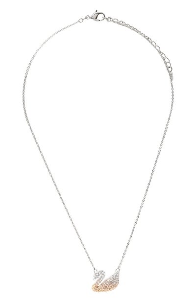 Подвеска в виде знакового для марки лебедя будет особенно эффектно выглядеть в лучах света. Все дело в россыпи сверкающих кристаллов, которые закрепили в уникальной технике ручной инкрустации Pointiage, усиливающей сияние. Изделие из гипоаллергенного сплава с серебристым родиевым покрытием дополнили тонкой цепочкой якорного плетения.