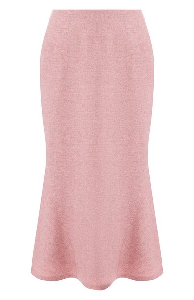 Розовая расклешенная юбка, которую Ульяна Сергеенко включила в осенне-зимнюю коллекцию, сшита из эластичной мягкой шерсти. Однотонная модель, застегивающаяся сзади на потайную молнию, подчеркивает силуэт. Советуем носить с жакетом в тон и белыми туфлями на шпильке.