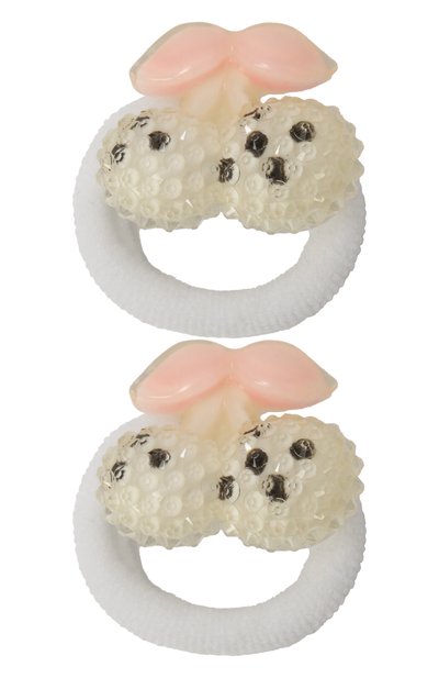 Миниатюрная резинка оттенка клубничного зефира не выглядит просто. Дизайнеры украсили такой прочный эластичный аксессуар объемной фигурой в виде двух ягод вишни. Этот фактурный декор выполнен из легкого пластика. В комплекте есть два одинаковых изделия.
