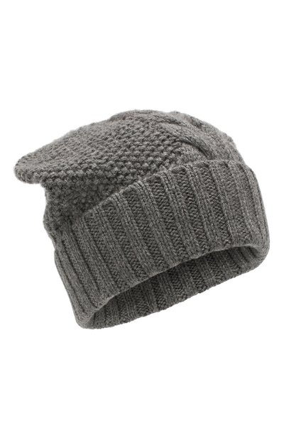 Для создания меланжевой шапки бини мастера использовали фактурный кашемир. Такой нежный легкий материал не только теплее, но и прочнее обычной шерсти, а на ощупь — мягче. Широкий отворот связан резинкой, поэтому модель спокойного серого цвета не стягивает кожу.