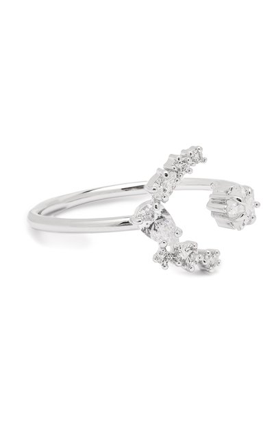 Разомкнутое кольцо, разработанное дизайнерами бренда вместе с Пенелопой Крус, гармонично дополнит и повседневный, и вечерний образ. На его создание вдохновило ночное небо, поэтому края увенчали элементами в форме луны и звезды. Максимального сходства с небесными телами добились за счет прозрачных кристаллов, мерцающих на фоне родиевого покрытия.