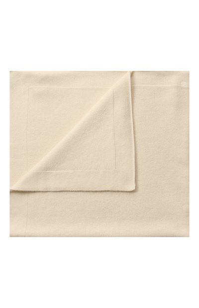 Под кремовым пледом не будет слишком холодно или жарко: за оптимальную для тела температуру отвечает нежный мягкий кашемир, который вычесан из подпушка коз, живущих в переменчивом горном климате. Изделие можно назвать образцом минимализма. Единственный декор — широкий кант, связанный гладью.