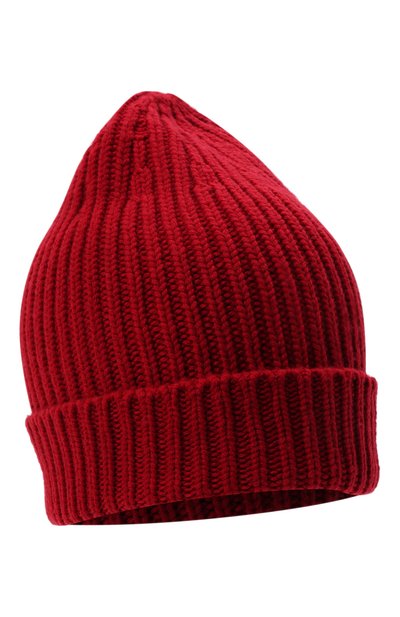 Для изготовления ша пки насыщенного красного цвета мастера бренда использовали мягкую шерстяную пряжу. Чтобы сделать модель теплее и приятнее на ощупь, в нити добавили нежные шелковистые волокна кашемира. Аксессуар связали английской резинкой, поэтому он хорошо тянется и комфортно облегает голову.
