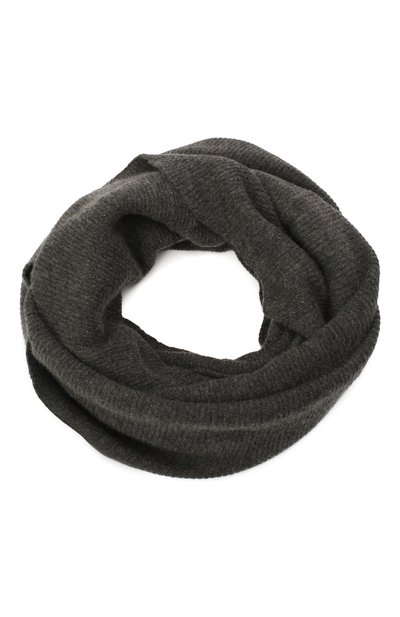 Темно-серый снуд связан резинкой, поэтому хорошо тянется, мягко облегая шею. Для изготовления лаконичного, очищенного от декора аксессуара мастера бренда использовали тонкий фактурный кашемир, который поддерживает оптимальную для кожи температуру, оставаясь почти невесомым.