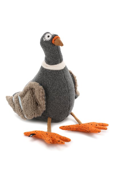 Темно-серая игрушка в виде голубя поможет в развитии тактильных ощущений: за это отвечает мягкий текстиль разной фактуры. Аксессуар скомбинировали из искусственного меха с коротким ворсом, материала, напоминающего на ощупь войлок, и стилизованной под мягкую замшу ткани. Благодаря плотной набивке изделие хорошо держит форму.