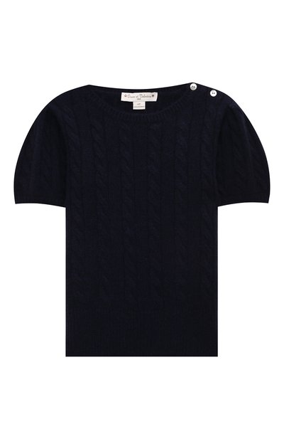 Для создания темно-синего пуловера использовали тонкую кашемировую пряжу. Перед производством пряжи волокна, вычесанные из подпушка горных коз, тщательно сортируют, чтобы отсортировать поврежденные и короткие, поэтому готова вещь получается особенно нежной. Изделие удобно надевать и снимать благодаря двум пуговицам на левом плечевом шве.
