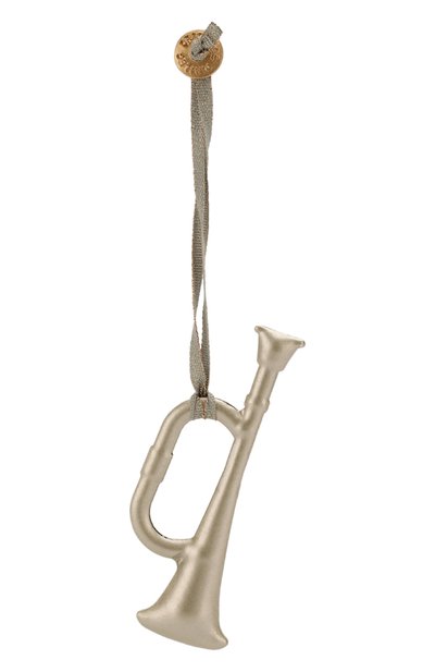 Для создания небольшой игрушки в виде трубы использовали прочный гипоаллергенный сплав. Изделие вручную покрыли серебристой краской, которая не выделяет неприятных запахов. В комплекте – длинная текстильная тесьма с добавлением блестящих нитей люрекса.