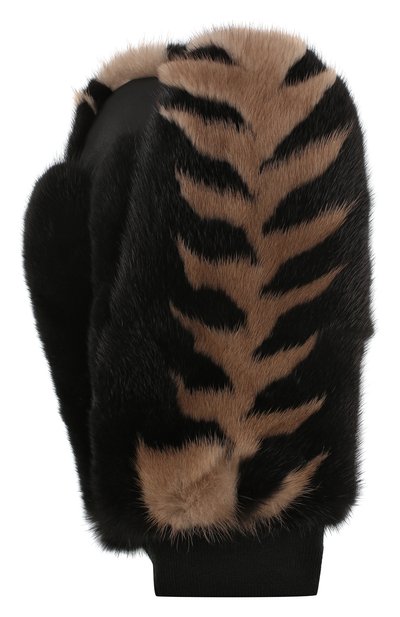 Дизайнеры марки сделали черные варежки с бежевым графичным узором максимально теплыми. За комфорт при низких температурах отвечает густой пушистый мех норки. Материал считается одним из самых прочных, поэтому аксессуар прослужит долгие годы. Изделие с вставкой из матовой кожи на ладонной части не спадет за счет широкой эластичной трикотажной манжеты.