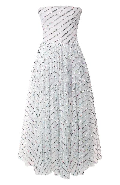В круизной коллекции дизайнеры марки голосуют за традиционную женственность, их аргумент – пастельно-голубое платье. Модель расшили рядами сияющих на солнце пайеток. Узор, который они создают, акцентирует внимание на переходе от приталенного лифа к объемному расклешенному подолу из полупрозрачной ткани. Изделие с открытой линией плеч сформирует привычку демонстрировать правильную осанку.