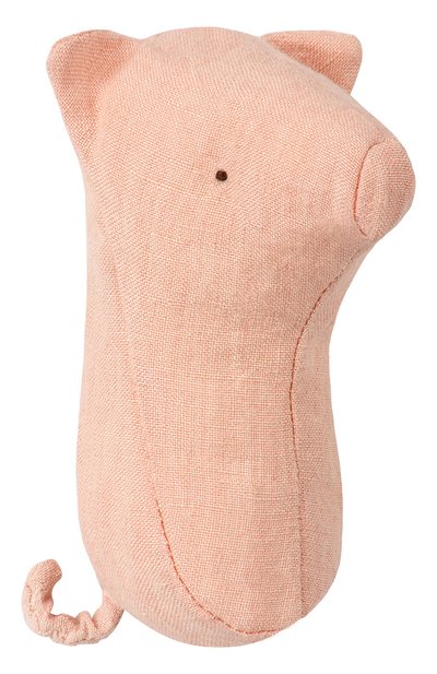 Мастера марки вручную сшили небольшую розовую погремушку в виде поросенка из прочного гипоаллергенного льна, который развивает тактильные ощущения. Изделие хорошо держит форму благодаря легкому наполнителю, не сбивающемся в комки после стирки в прохладной воде.