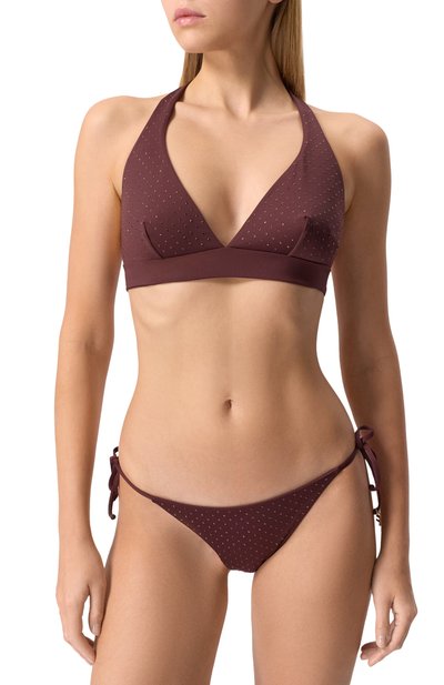 Бра из коллекции Ajourage Couture дополнили эластичным поясом из перфорированного кружева. Модель с мягкими треугольными чашечками и замком-защелкой сзади сшили из моделирующей микрофибры Lycra® Beauty.