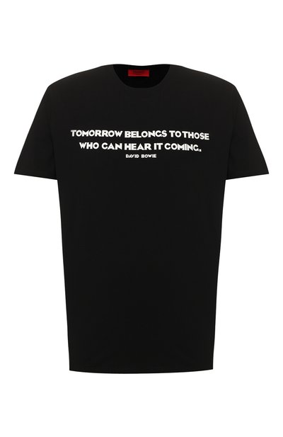 Черная футболка вошла в капсульную коллекцию Hugo Loves Bowie, посвященную Дэвиду Боуи. Поэтому модель украсили белым слоганом, который музыкант использовал для рекламы альбома «Heroes» — части серии «The Berlin Trilogy». Изделие из мягкого хлопкового джерси не теряет форму и не пилингуется после частых стирок. Наши стилисты рекомендуют носить его с синими джинсами и светлыми кедами.