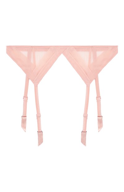 Для изготовления пояса светло-розового оттенка мастера марки использовали тонкий сетчатый материал. Треугольные элементы спереди декорированы широкими складками. За комфортную посадку отвечают эластичный пояс и регулируемые по длине пажи.