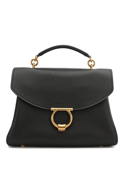 В весенне-летнюю коллекцию вошла черная сумка Margot. Для изготовления модели мастера марки, основанной Сальваторе Феррагамо, использовали мягкую зернистую кожу, фактуру которой подчеркивает легкий матовый блеск. Фигурный клапан дополнен крупной золотистой пряжкой Gancini, которая впервые появилась на вещах бренда в 1960-х. В комплект входит съемный плечевой ремень.