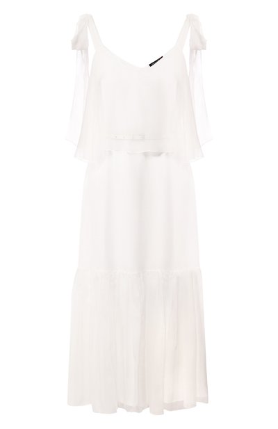 Нейтральный белый цвет и мягкие оборки: Александр Терехов сделал платье из весенне-летней коллекции квинтэссенцией женственности. Наши стилисты предлагают поддержать заданное настроение босоножками и небольшой сумкой. Для создания модели с многоярусным подолом и тонким ремешком на талии использовали тонкий шелковый крепон с жатым эффектом.