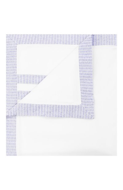 Для изготовления белого пледа с голубым полосатым кантом и вышитой эмблемой мастера бренда использовали мягкий гипоаллергенный хлопок, который хорошо пропускает воздух и поддерживает комфортную для тела температуру. Такой аксессуар можно взять с собой на прогулку ‒ его размеров хватит, чтобы укрыть ребенка в коляске.