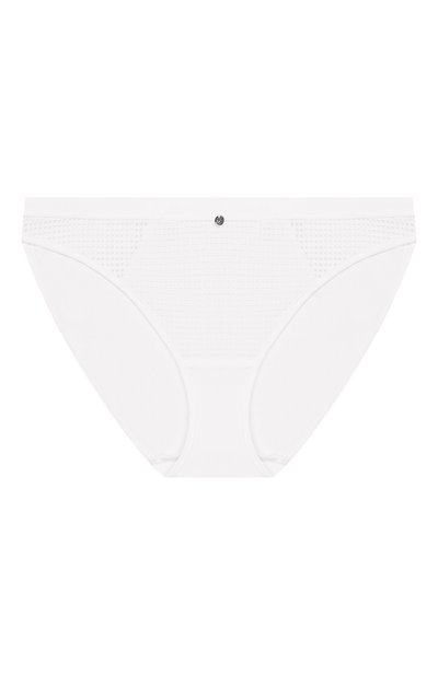 Белые слипы с классической посадкой сшиты мастерами марки из легкого гладкого текстиля. Для отделки использовали мягкий сетчатый материал, который слегка тянется. Трусы с плоскими швами и эластичным поясом комфортно садятся по фигуре и не сдавливают кожу.
