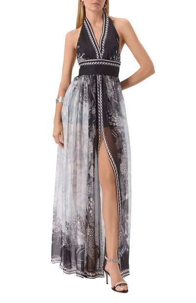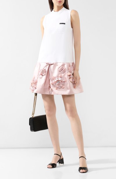 Черные босоножки с перекрещивающимися широкими ремешками сшиты из мягкой, но при этом прочной сафьяновой кожи, знаковой для марки, основанной семьей Прада. Высоту устойчивого каблука компенсирует платформа в подносочной области. Полностью очищенная от декора модель фиксируется на щиколотке ремешком с круглой пряжкой.