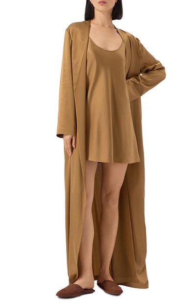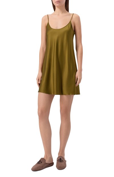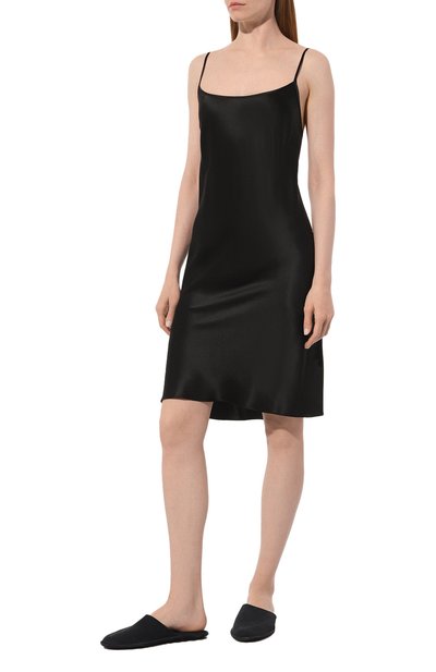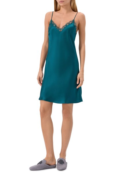 Короткую полуприталенную сорочку из линии Basic Seduction выполнили из шелкового атласа. Длину узких бретелей можно регулировать слайдерами.