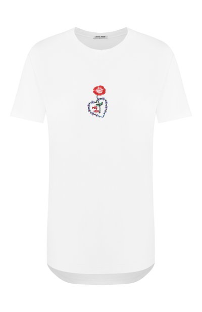 В сезоне весна-лето Миучча Прада вывела базовую белую футболку на новый уровень только за счет декора. Модель из мягкого легкого хлопка джерси стала романтичнее благодаря разноцветной вышивке в виде сердца и цветка спереди. Такое изделие подружится и с простыми джинсами, и с летящей юбкой.