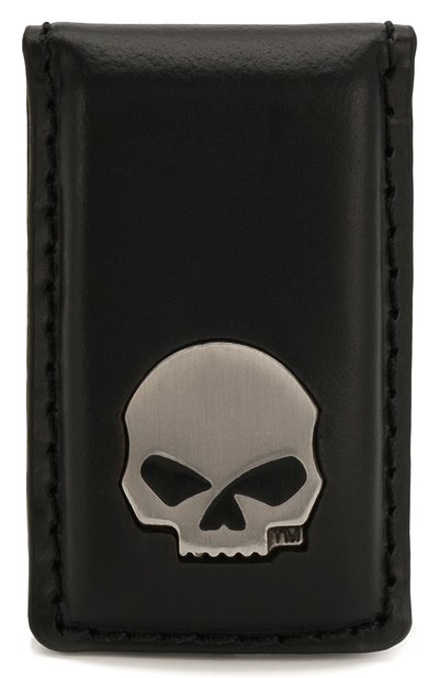 Мастера марки изготовили черный зажим для банкнот из прочной воловьей кожи, которая не боится царапин и потертостей. Сзади аксессуар с магнитным замком декорировали рельефным логотипом, спереди – крупной металлической вставкой в виде черепа (мотив, которым украшали детали ограниченных серий мотоциклов, придумал Вилли Дж. Дэвидсон).