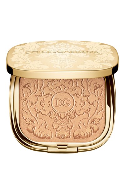 Невесомая формула мерцающей пудры драгоценного золотого оттенка насыщена многогранными пигментами. Она мягко рассеивает свет, придает лицу свежесть и естественное сияние. За счет шелковистой текстуры покрытие получается равномерным и невесомым. Средство заключено в футляр, вдохновленный знаковой для бренда барочной эстетикой.