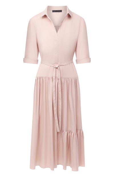 В коллекцию сезона весна-лето вошло платье из тонкой легкой хлопковой ткани, которая хорошо ложится в складки. Взяв за основу рубашку, Светлана Тегин дополнила изделие воланами с мягкой фактурной драпировкой, делающей модель с отложным воротником более романтичной. Узкий пояс позволяет подчеркнуть талию.