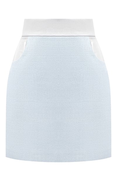 В случае с этой мини-юбкой из весенне-летней коллекции Ульяна Сергеенко сыграла на контрасте цветов и фактур. Модель из пастельно-голубой чесучи с характерной неровной фактурой дизайнер дополнила широким серебристым поясом. Вставки из такого же металлизированного мелкозернистого материала подчеркивают врезные карманы.
