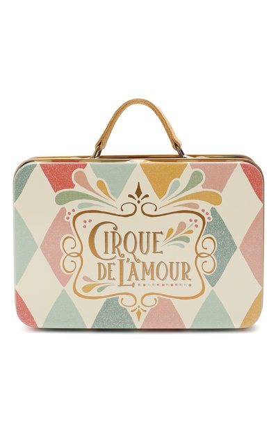 Для изготовления бежевого чемодана с разноцветным геометрическим орнаментом мастера марки использовали легкий металл. Спереди изделие украсили стилизованным под цирковую афишу рисунком. Внутрь поместится одежда для любимых миниатюрных игрушек.
