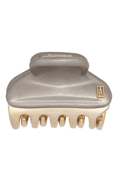Для изготовления обновленной версии знаковой заколки Vendome, удерживающей даже тяжелые локоны, использовали прочный биоацетат. Модель покрыли серебристой краской, которая поможет добавить прическе немного блеска. О принадлежности аксессуара с бежевыми фигурными зубцами бренду говорит золотистая рельефная эмблема в виде буквы А.